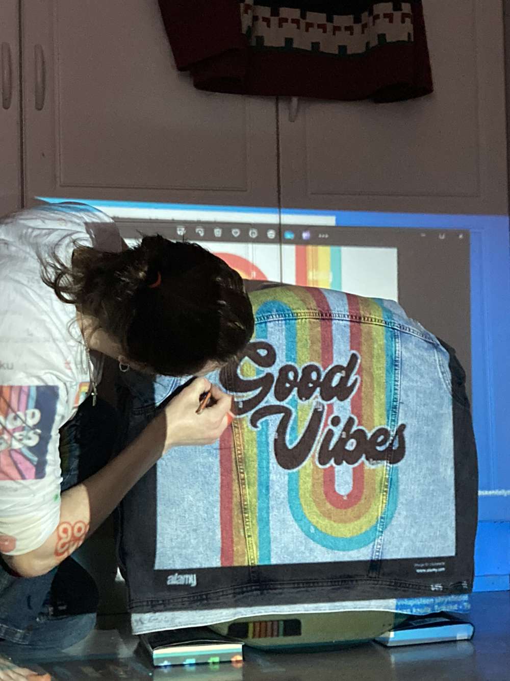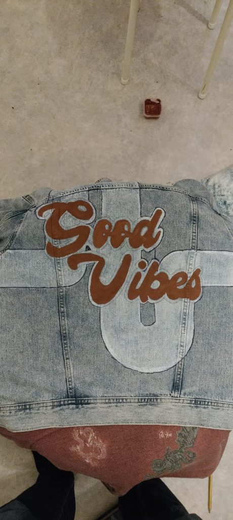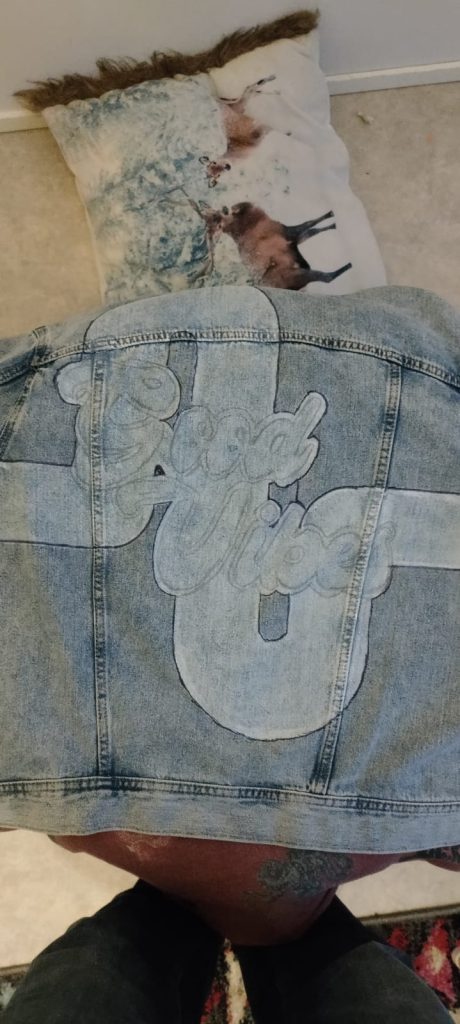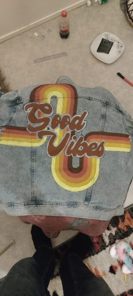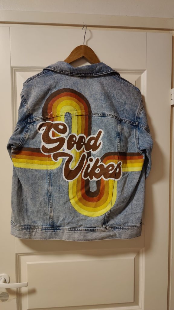 Kesäloman alussa äitini kysyi minulta ”Saanko maalta sun takkiin kuvan?” johon kieltäydyin. Seuraavana päivänä ostin uuden takin ja aloin maalaamaan sitä 🙂